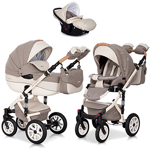 3in1 Kombi Kinderwagen BRANO ECCO Cafe Late Komplettset - Leder & Aluminium Tech