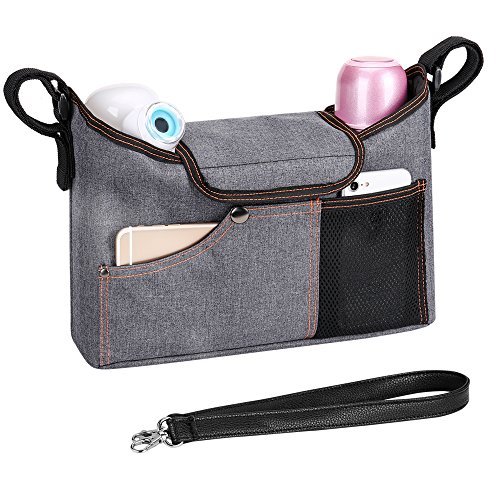 Verkauf Jerrybox Kinderwagen Organizer mit Schultergurt und Deckel Universale Kinderwagentasche Buggy Tasche Multifunktionale Tasche mit 2 Isolierte Tassenhalter, Großes Aufbewahrungsfach für Milchflasche, Handys, Windeln, Spielsachen und iPads, Grau