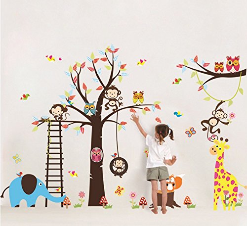 * Maße: 60 * 90cm. Eine schöne Baum Dschungelzoo Wandtattoo für Ihr Zuhause!